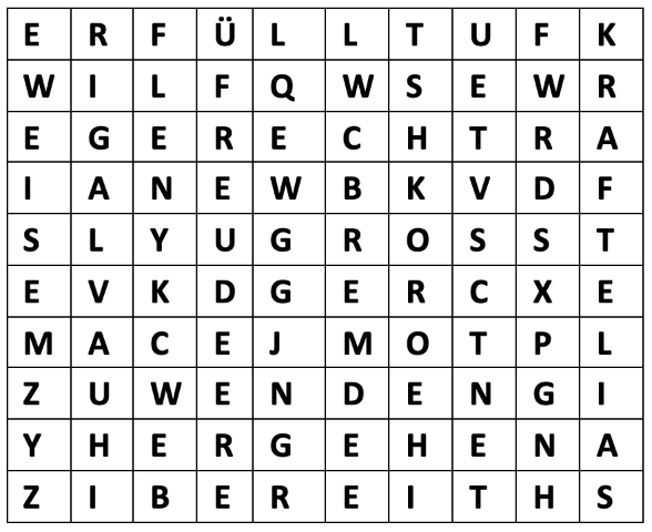 Klicke die fett gedruckten Wörter im Buchstabenchaos an!