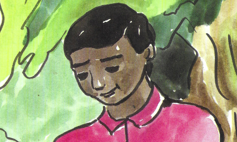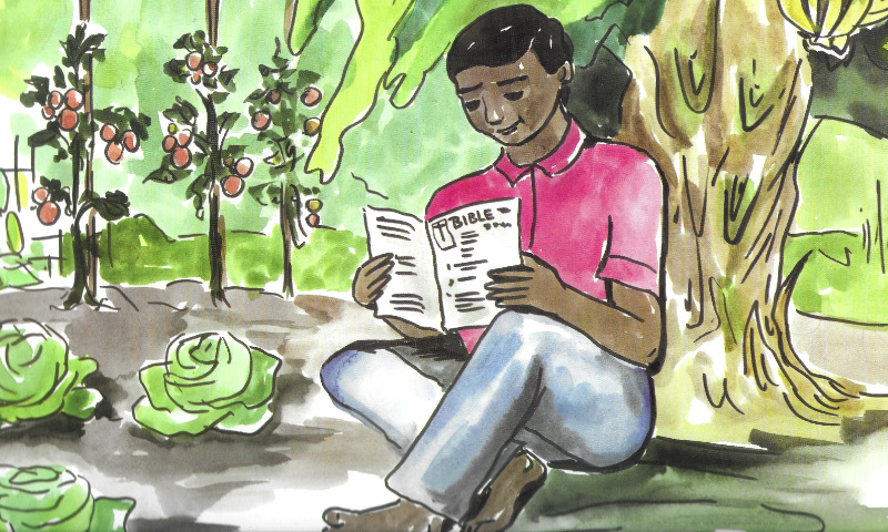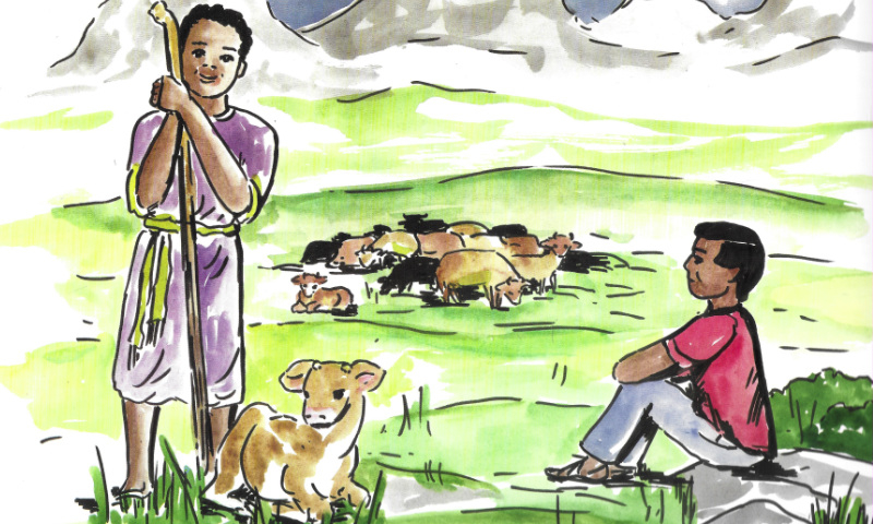 Raju will sich mit Samuela verabreden. „Ich habe keine Zeit. Ich gehe in die Kinderstunde. Komm doch mit!“ Von da an geht Raju mit zur Kinderstunde. Er mag die Geschichten aus der Bibel. Aber zuhause erzählt er nichts davon.