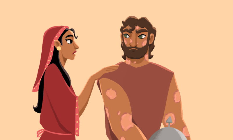 Das Mädchen hörte, dass Naaman krank war. Er hatte Aussatz. Das ist eine sehr schlimme Hautkrankheit.
